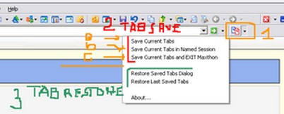 ErnestR4 Posté(e) le 5 mars 2006 Posté(e) le 5 mars 2006 Bonjour, Est ce que quelqu'un aurait installé ces deux plugins et pourrait m'expliquer comment cela fonctionne car je ne comprends pas ... Merci Tony Bonjour, 1- Le plug in Tabsaver inclus aussi Tabrestore. Donc un seul plugin suffit. 2 - Une fois installé le plugin Tabsaver affiche une icône dans la barre des plugins avec une flèche indiquant les options possibles. voir l'image jointe : 3 - TABSAVER : Suivant ce que l'on veut faire, on sauvegarde les onglets (tabs) ouverts : a - save current tabs = enregistrer l'onglet actif ; b - save current tab in named session = enregistrer les onglets avec un nom de session (une boite de dialogue s'ouvre où on peut inscrire un nom, par défaut il est indiqué la date du jour et l'heure) ; c - save current tabs and exit Maxthon = enregitrer les onglets en cours (la boite de dialogue ne s'ouvre pas et le nom par défaut et enregister comme nom de session) et quitte maxthon. 4- TABRESTORE : Pour restaurer les onglets enregistrés : deux options : a - Restore last saved tabs = ouvrir les derniers onglets enregistrés b - Restore saved tabs dialogue = Ouvre une boite de dialogue permettant de choisir une session (dans la session éventuellement un ou des onglets) parmi les sessions sauvegardées. Est-ce suffisant commes explications ? PS : Si, comme je l'ai fais pour tester, tu installes le plugin dans une version différente de Maxthon. La restauration s'effectue dans le Maxthon qui est le navigateur par défaut...